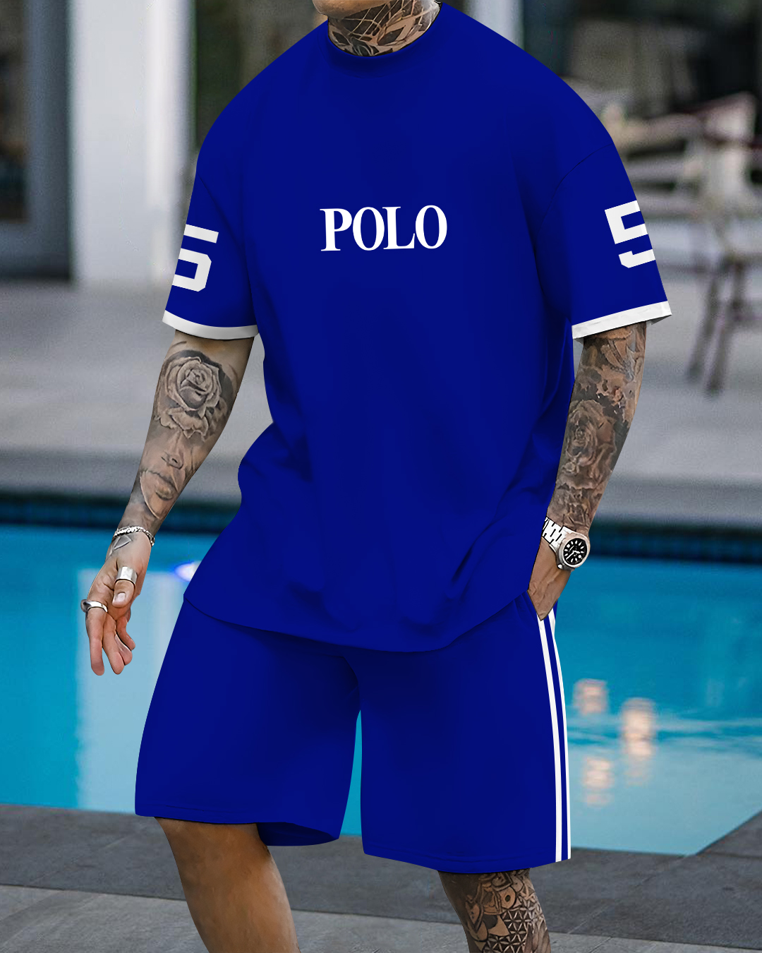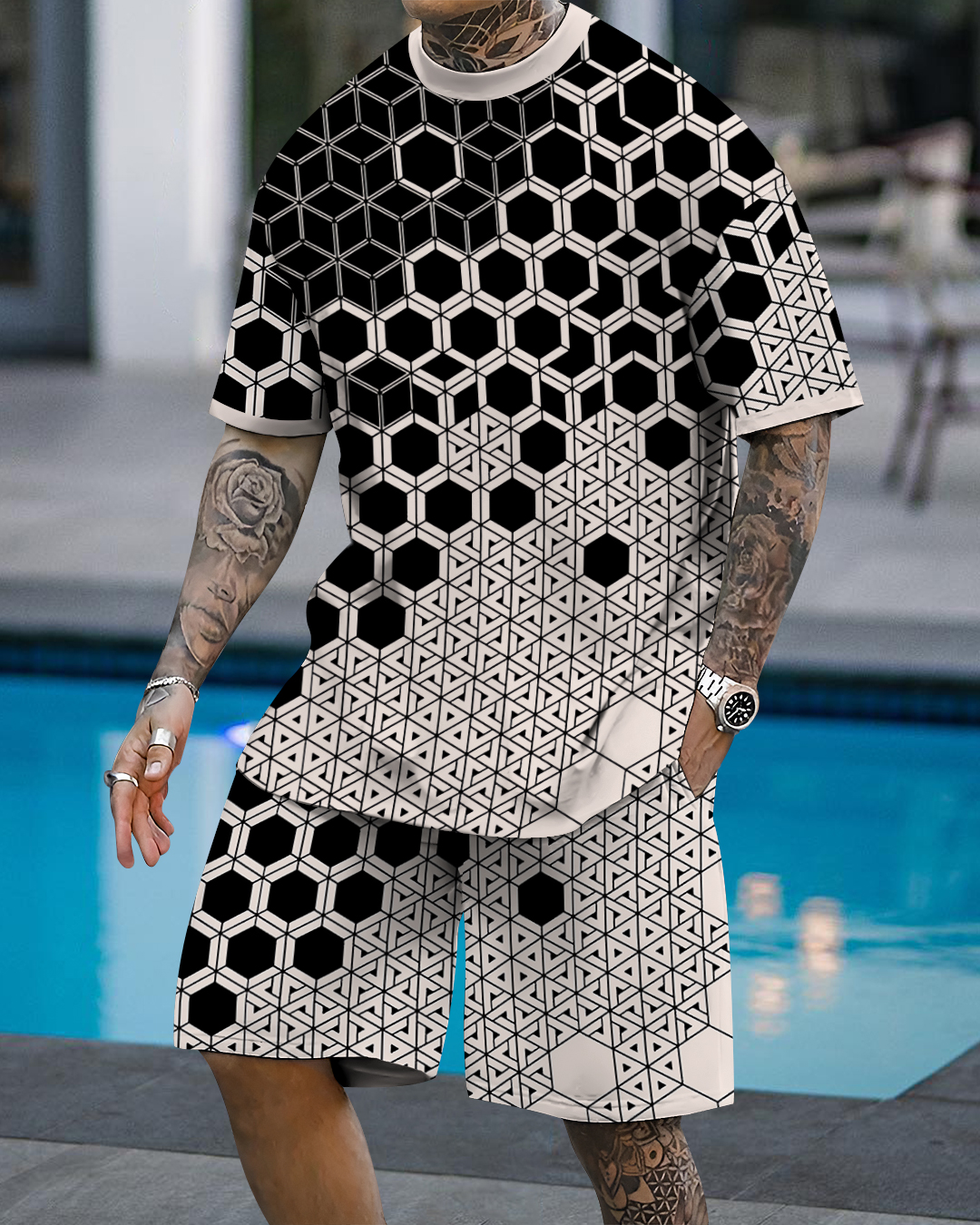 Men's fashion casual color matching printed short-sleeved two-piece set