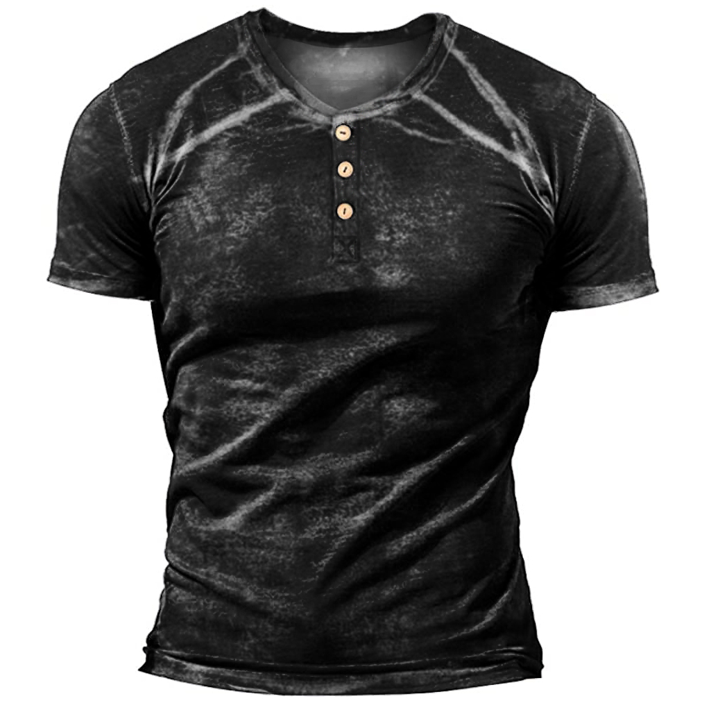 Men's Outdoor Vintage Henley Collar Short Sleeve T-shirt