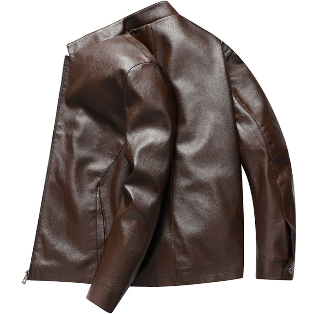 Men's Outdoor PU Leather Motorcycle Suit Stand Collar Jacket