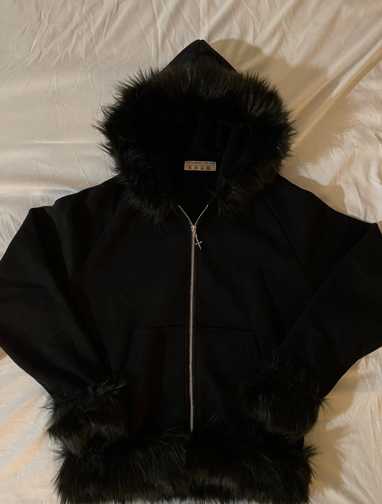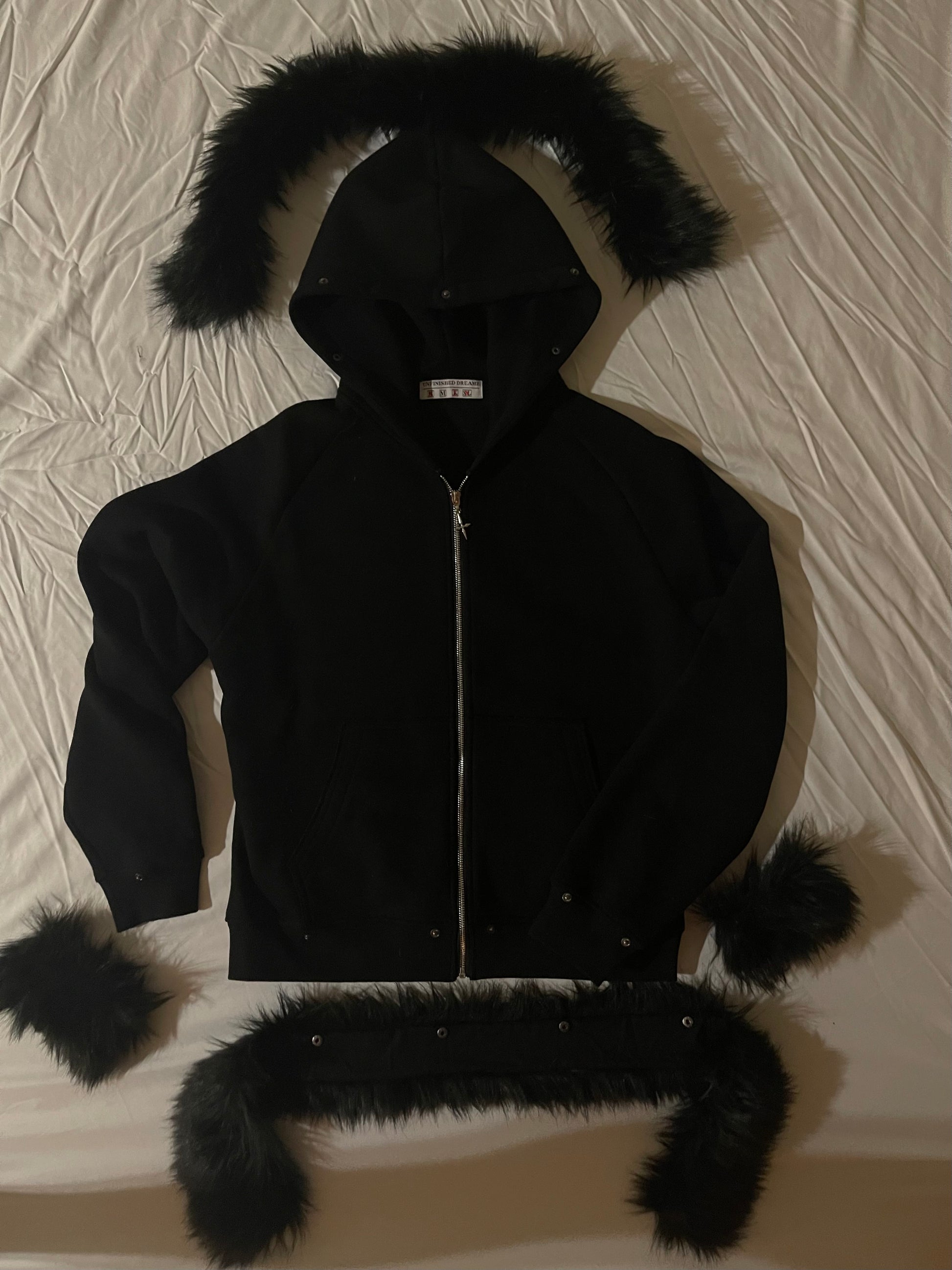 It comes with a custom zipper head, a custom woven tag and even the option to remove any parts of the fur and change the combination.