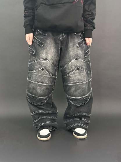These pants are made of High-Quality Heavyweight Brushed Denim with zipper pockets on each side. Very comfortable and warm. It will keep the color bright for a long time.