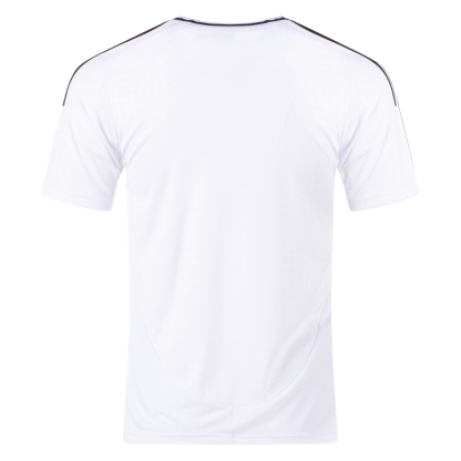 The 25/26 Real Madrid Home Jersey features the club’s traditional all-white base enhanced by soft gold and navy accents throughout the collar, sleeve cuffs, and branding. A subtle textured pattern inspired by the architecture of Madrid runs across the body, giving the jersey added depth and sophistication. The embroidered Real Madrid crest and Adidas logo are finished in metallic tones for a polished, championship-ready appearance. Engineered with lightweight, moisture-wicking AEROREADY fabric, it provides breathable comfort from the stands to the street.