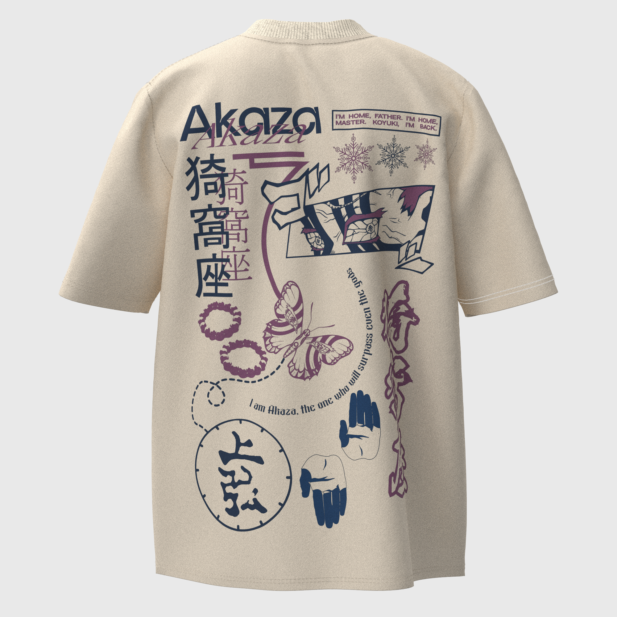 Through the medium of cotton, Akaza's legacy is immortalized, reminding wearers to find strength in serenity, no matter the trials they face. n the realm of "Demon Slayer," Akaza stands as an epitome of strength and serenity. On a pristine white cotton T-shirt, his essence is captured in a moment of tranquil intensity.