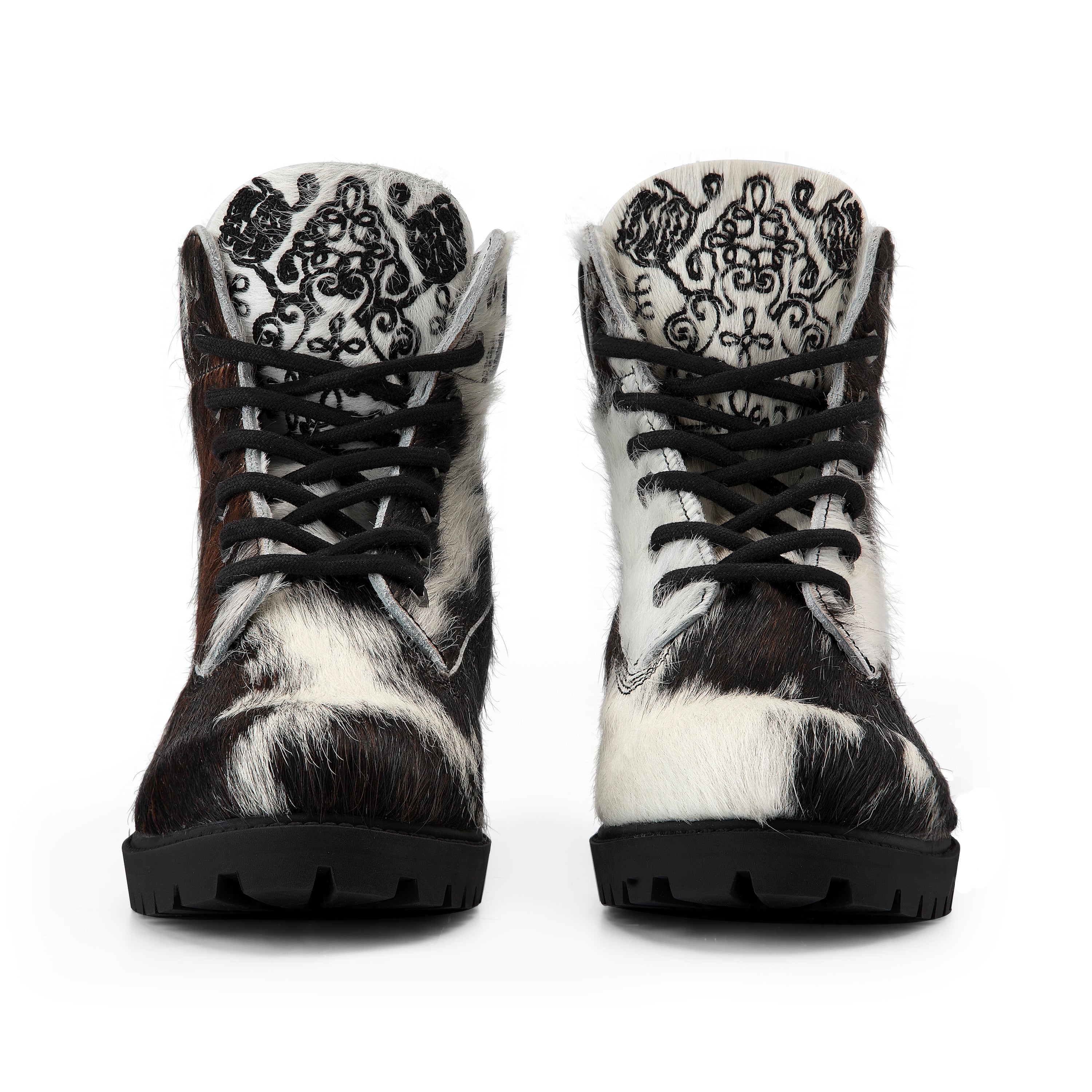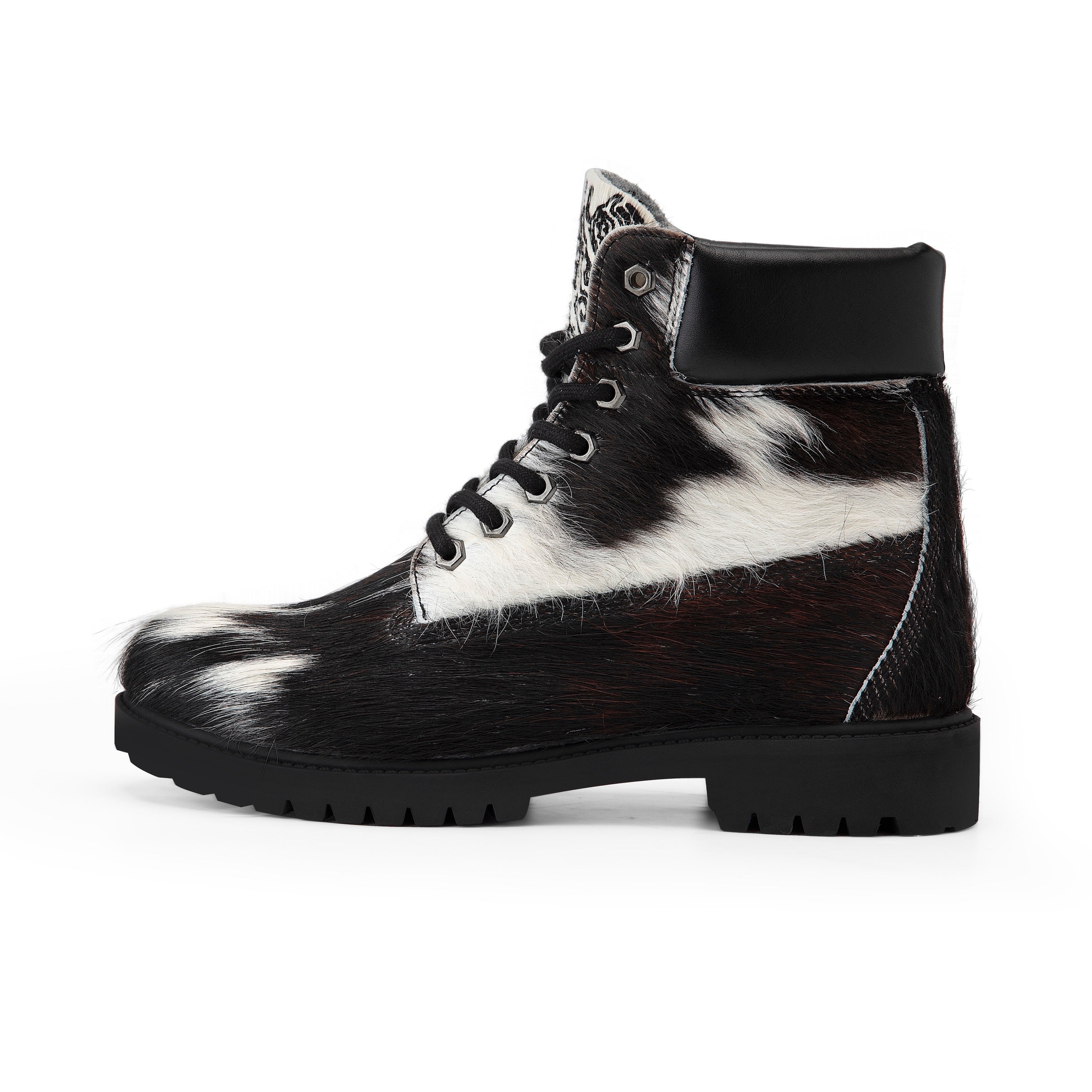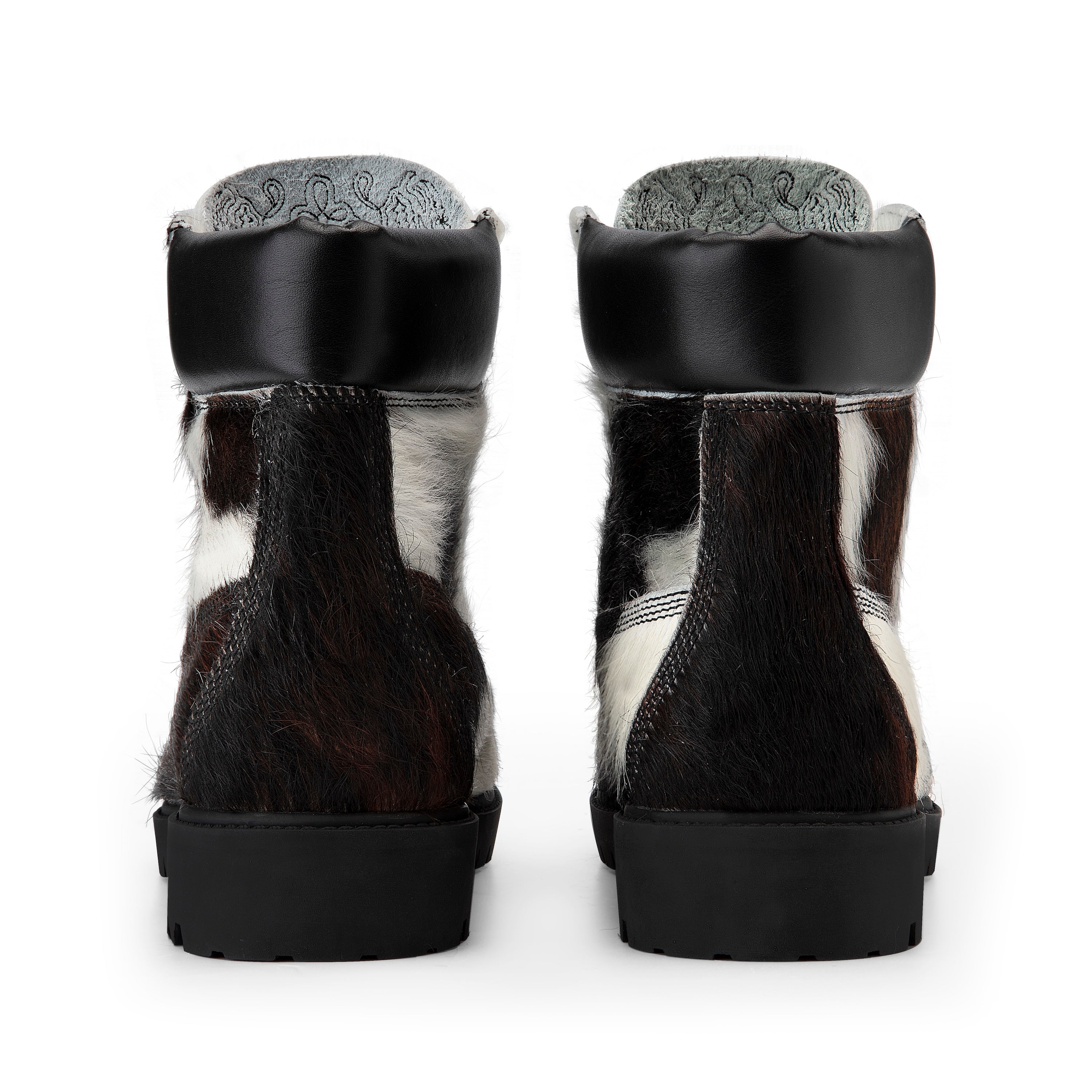 REAL COWHIDE MAY PATTERN WILL VARY WITH EACH SHOE / cow hide genuine leather / leather inner-lining / embossed insole / embroidery on tongue / rubber sole / fits true to size / manufactured in Türkiye