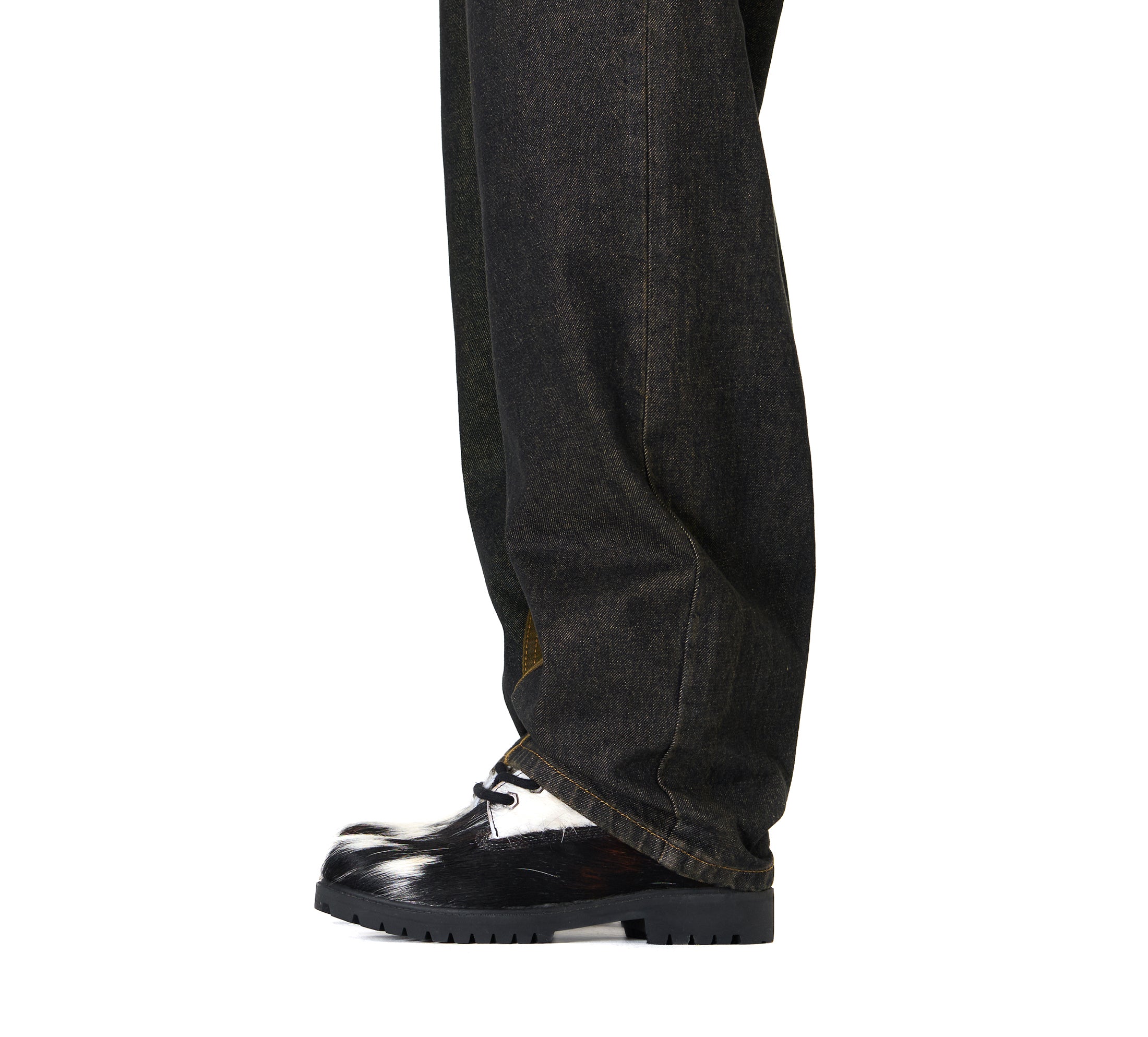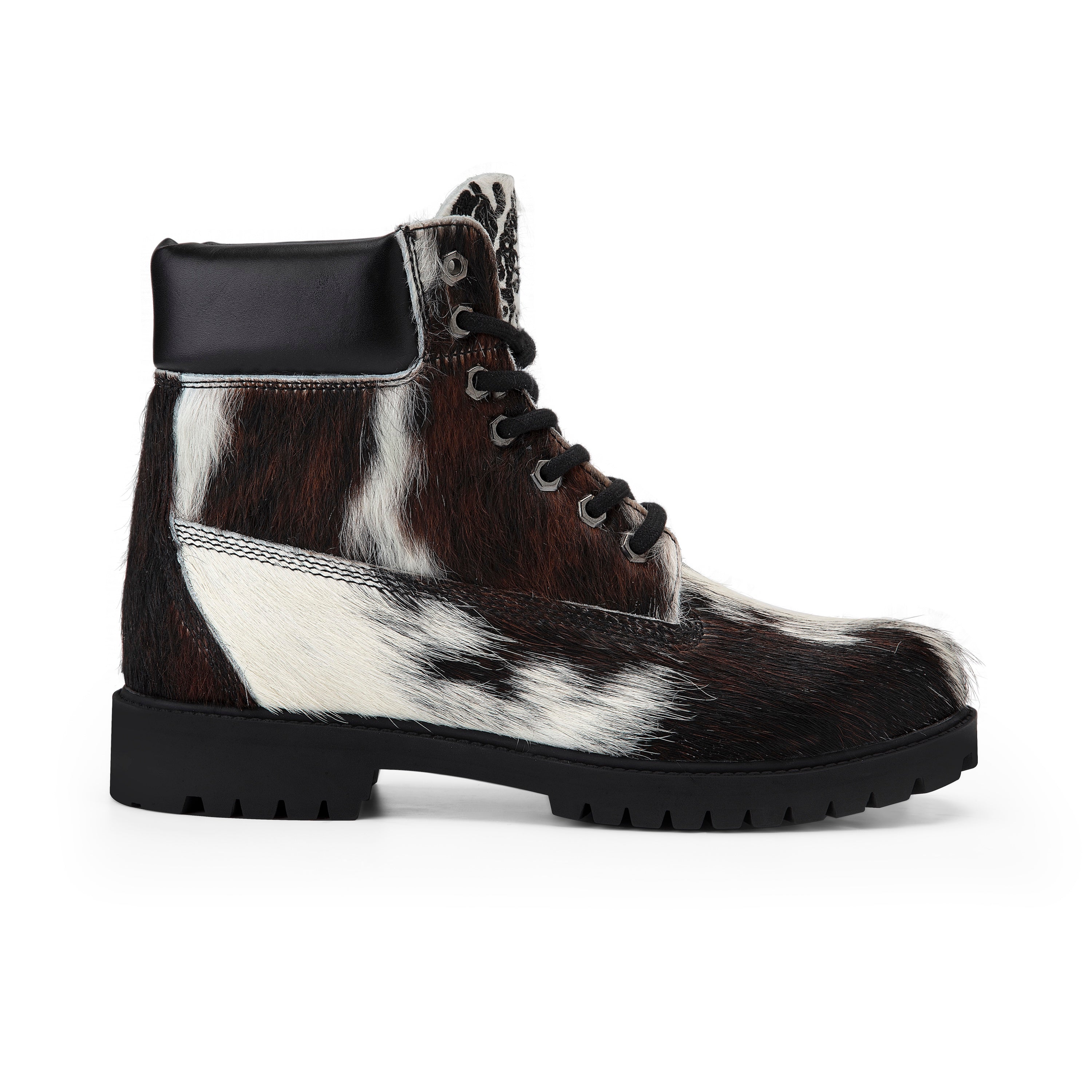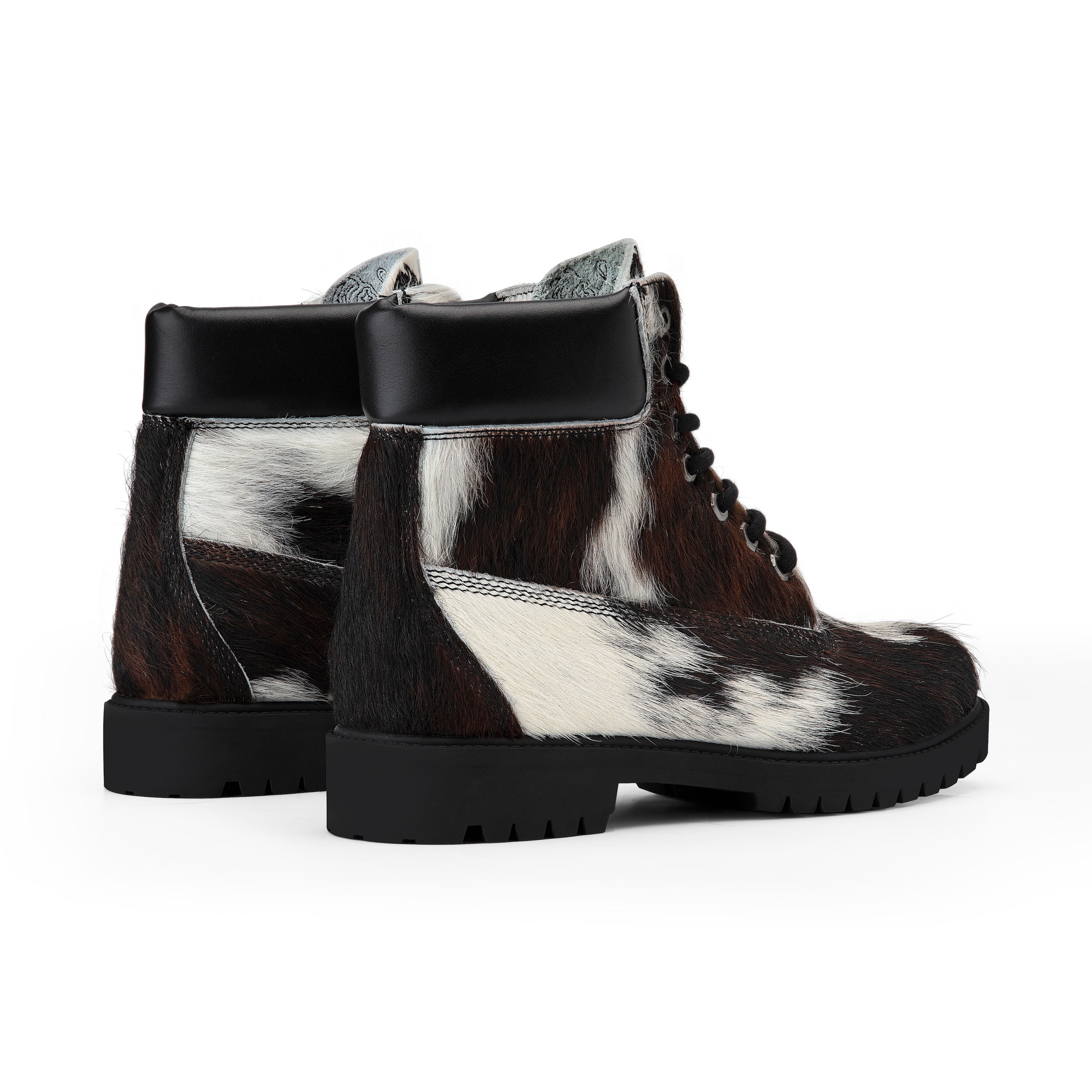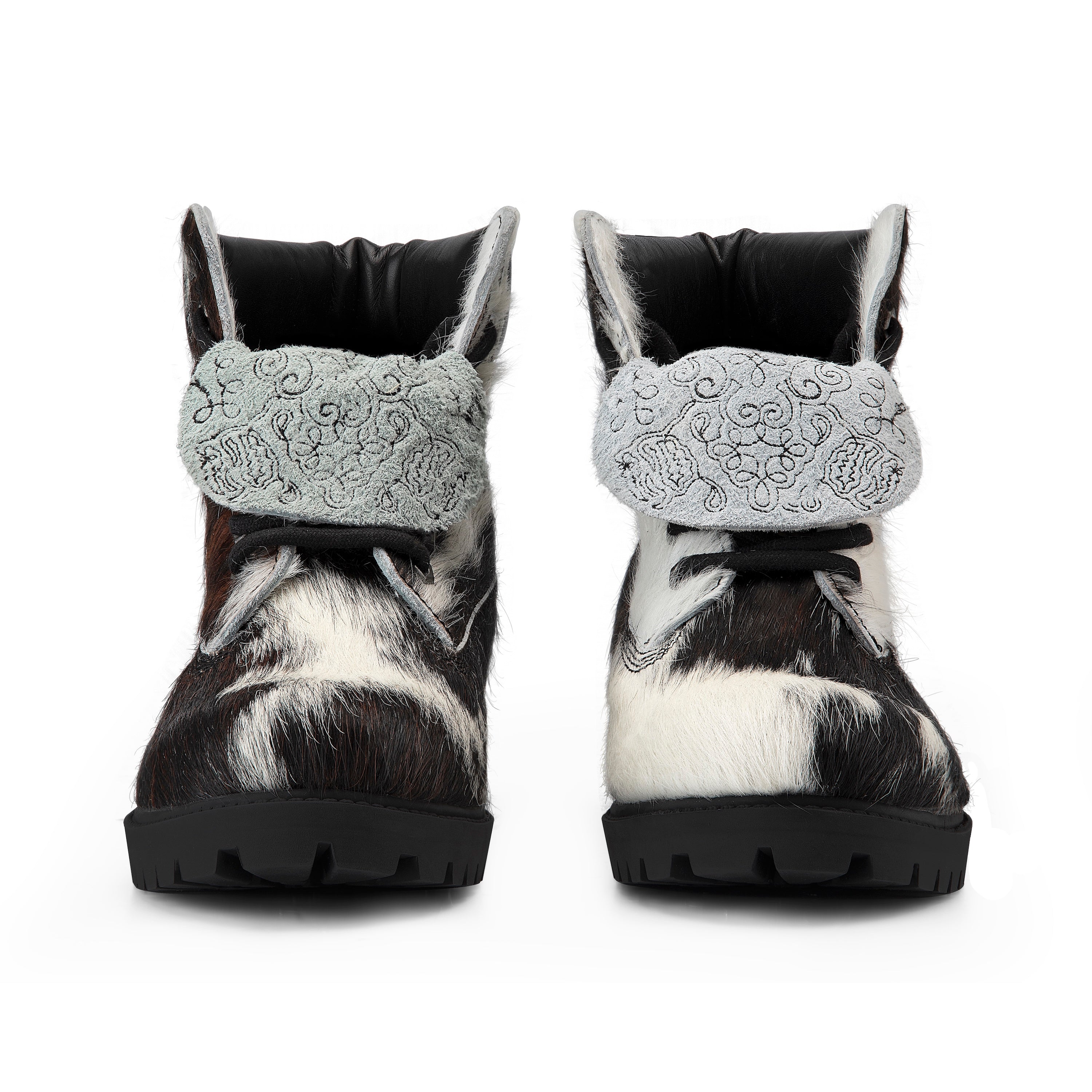 REAL COWHIDE MAY PATTERN WILL VARY WITH EACH SHOE / cow hide genuine leather / leather inner-lining / embossed insole / embroidery on tongue / rubber sole / fits true to size / manufactured in Türkiye