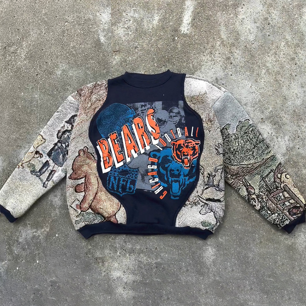 Fashion Bears Print Patchwork Long Sleeve Sweatshirt
