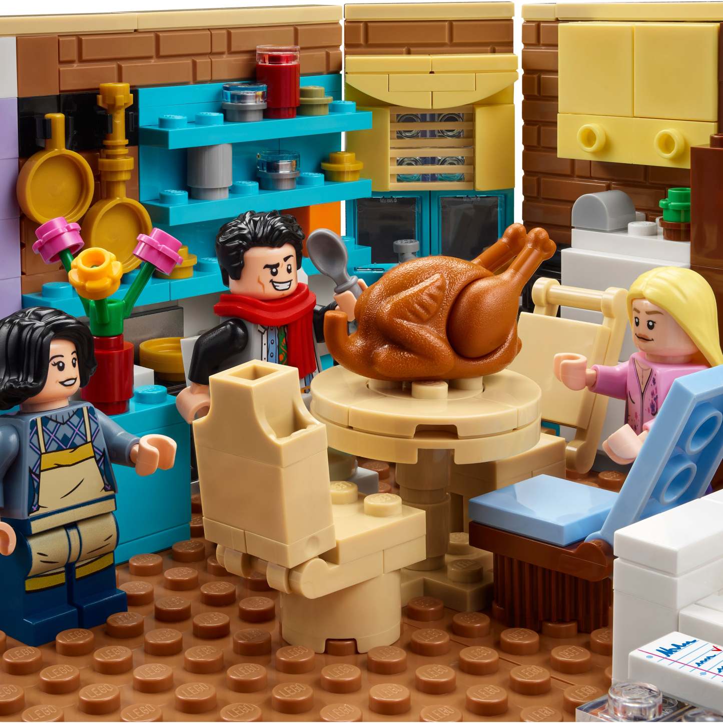 - Can you spot all the iconic moments celebrated in this set? Like the time the cheesecake falls on the floor, when a cat attacks Ross on the balcony, or when Joey gets the turkey stuck on his head?