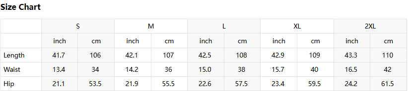 | Waist | 13.4 | 34 | 14.2 | 36 | 15.0 | 38 | 15.7 | 40 | 16.5 | 42 |