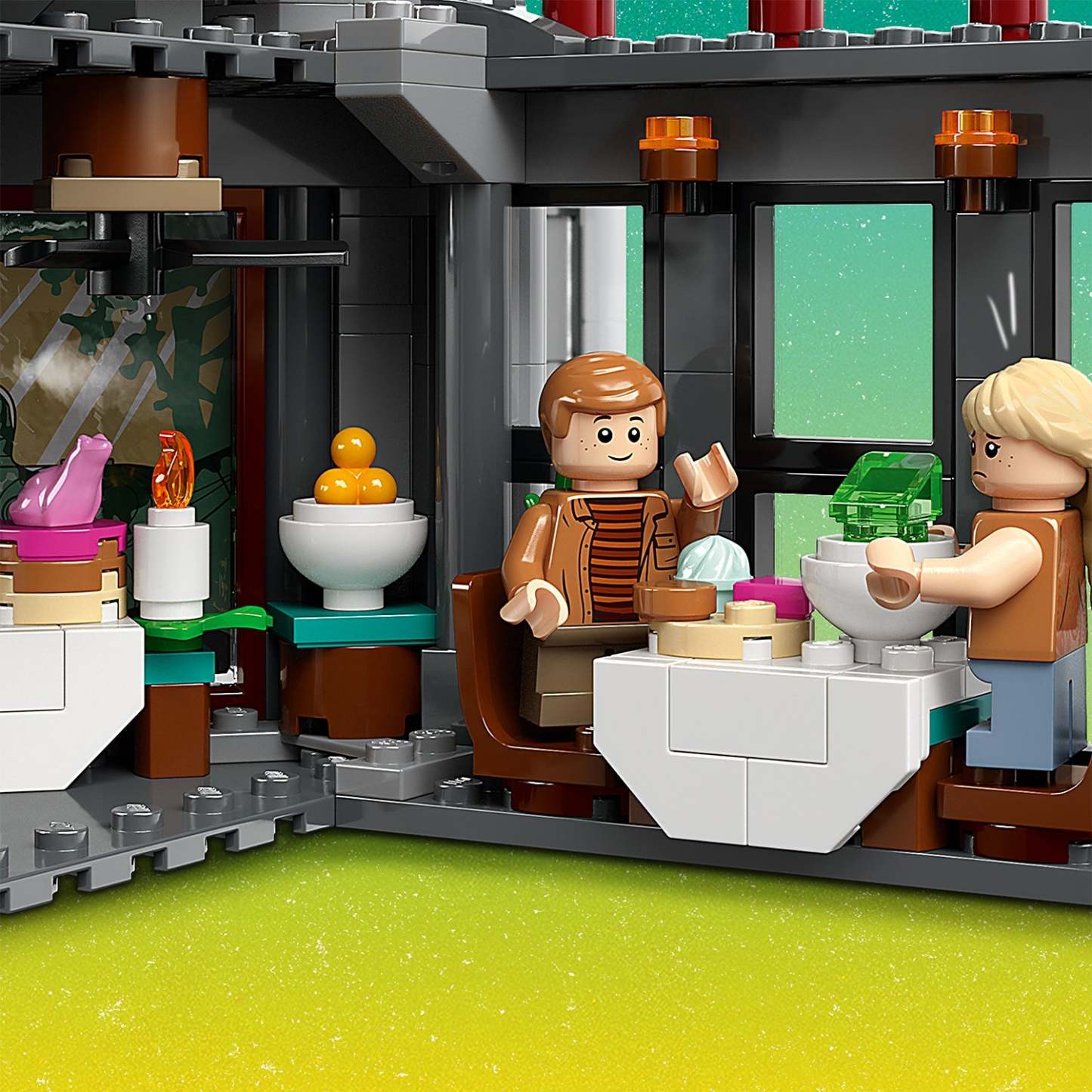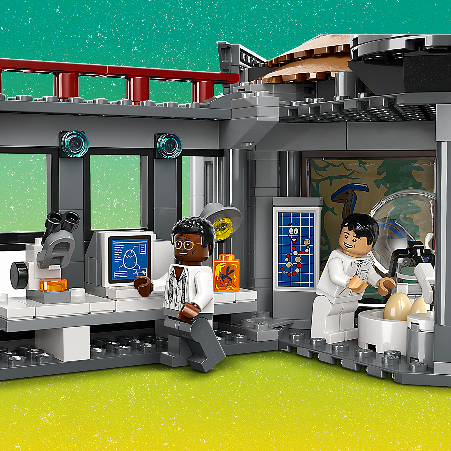 - Play-inspiring accessories – The kitchen/living area is packed with food and plant elements, and the lab features a buildable computer, microscope and dinosaur egg incubator