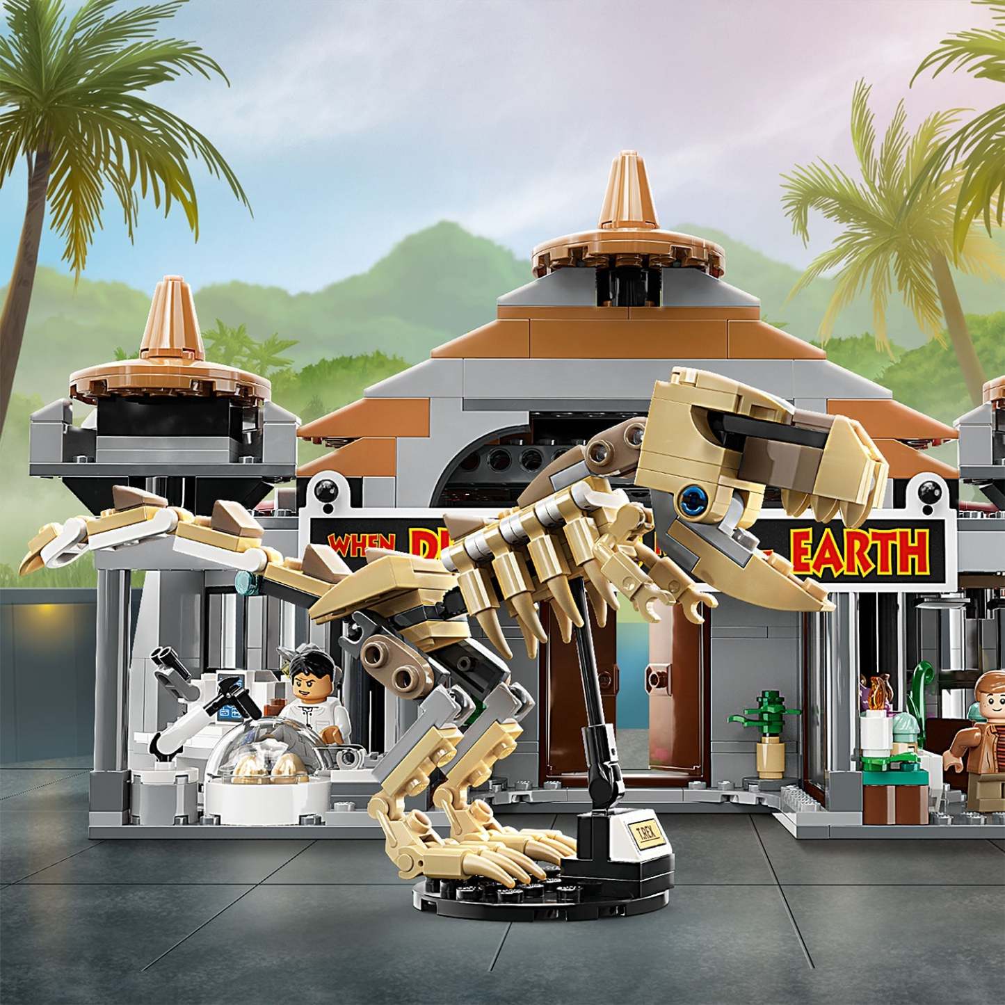 - Dinosaur building toy for play and display – Relive iconic Jurassic Park scenes with this authentically detailed LEGO® brick-built Visitor Center: T. rex & Raptor Attack (76961) set