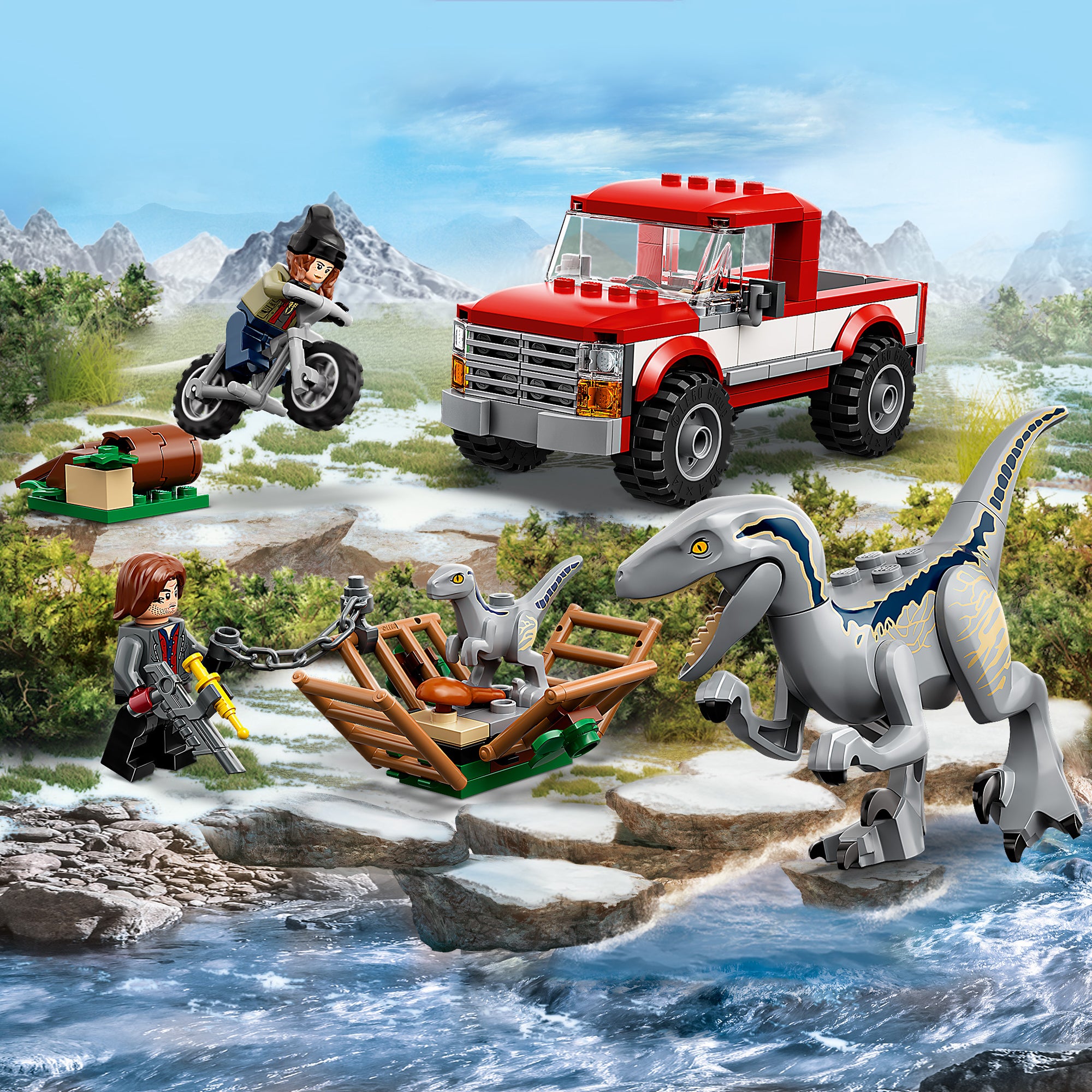 - Dinosaur and truck playset – Let kids reenact Jurassic World: Dominion movie action or create their own stories with this Blue & Beta Velociraptor Capture (76946) toy building set