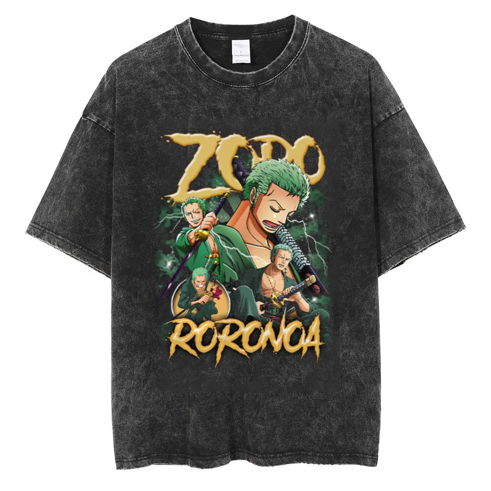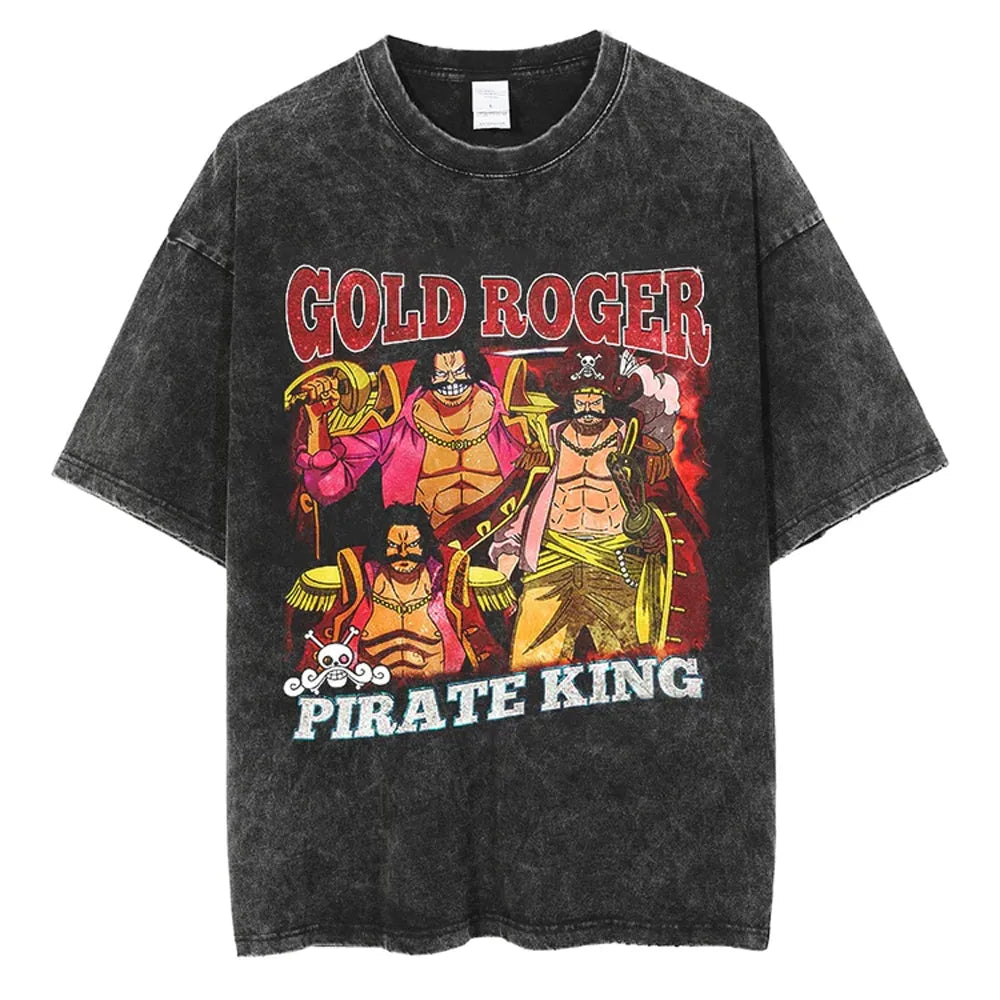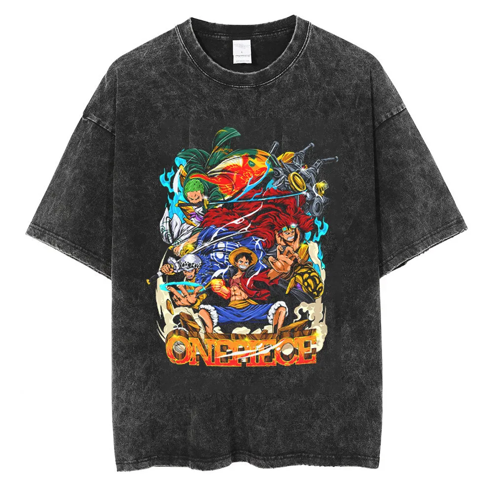 One Piece Anime Vintage Black T-Shirt - Men's Hip Hop Streetwear for a Stylish Summer Look"