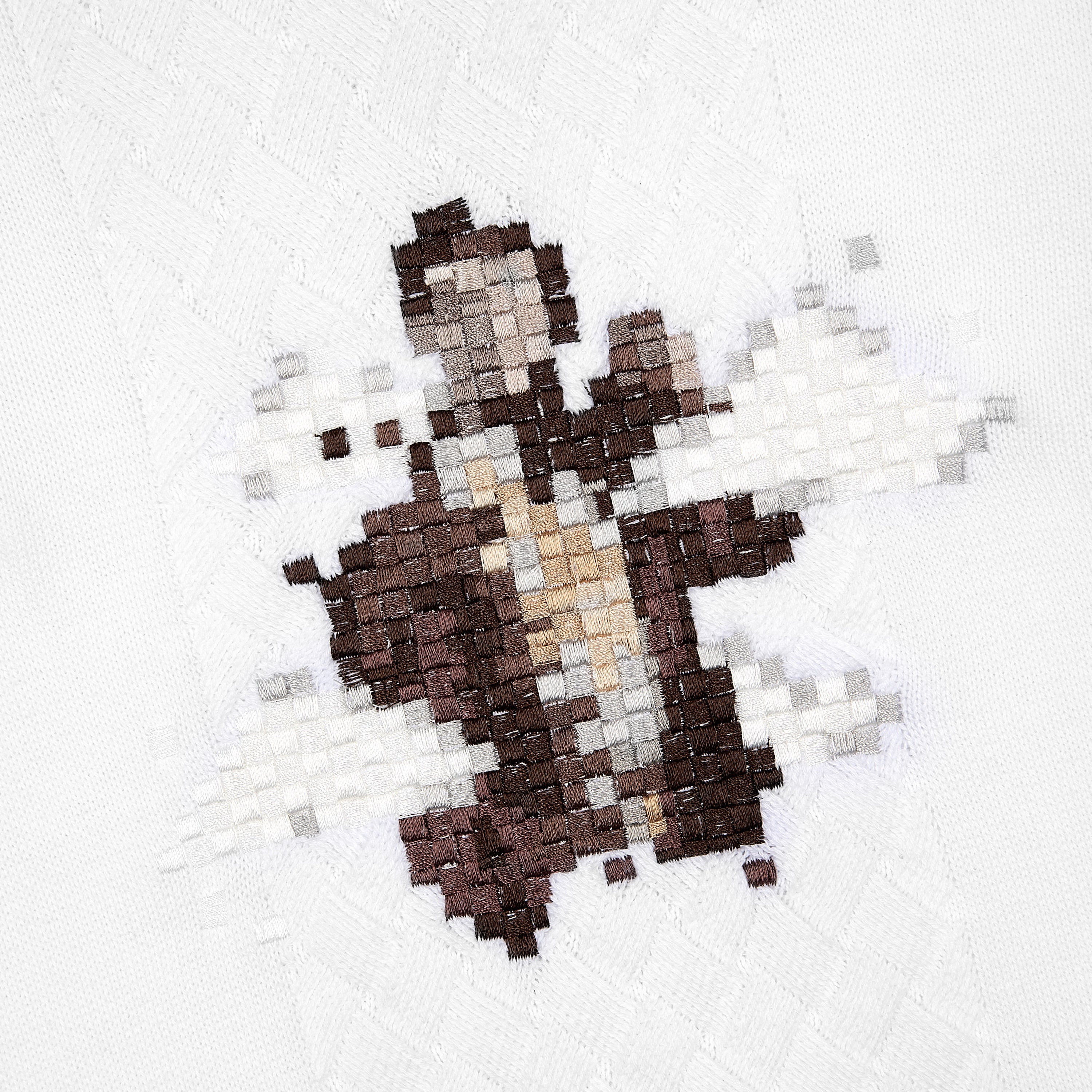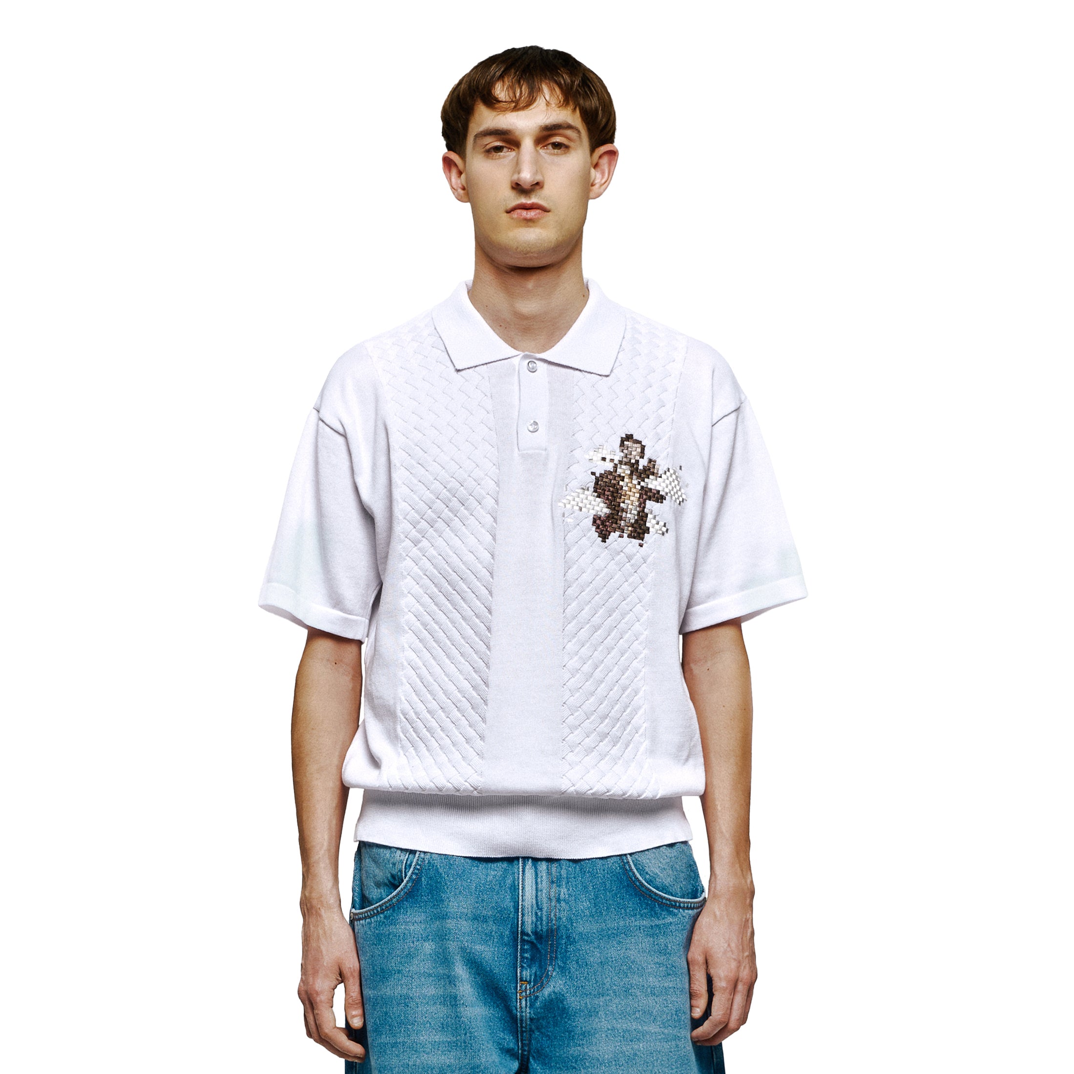 100% cotton / basket weave knit / embroidery on front / custom buttons / fits true to size