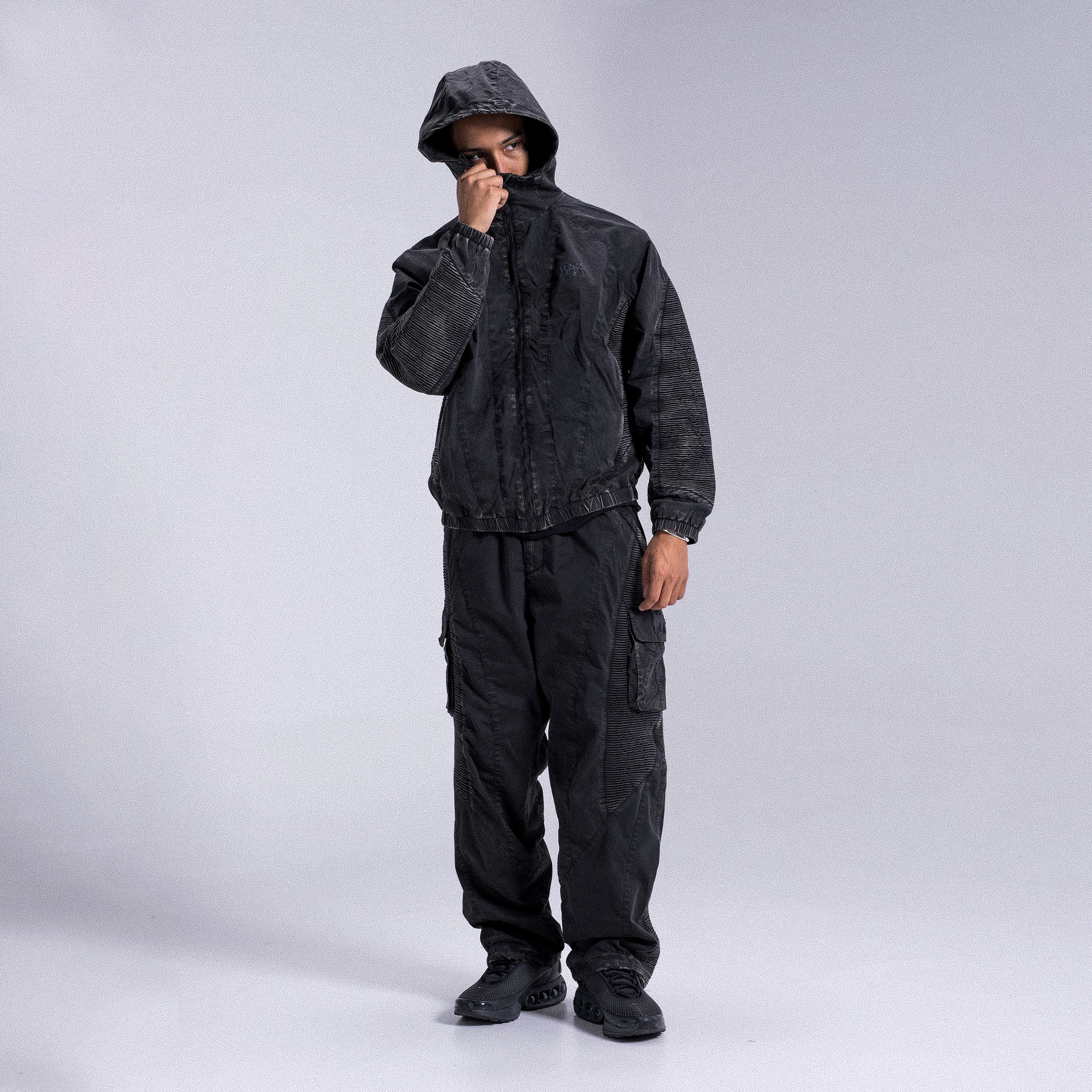 - Elastic toggles on the foot and waist for a customizable fit.