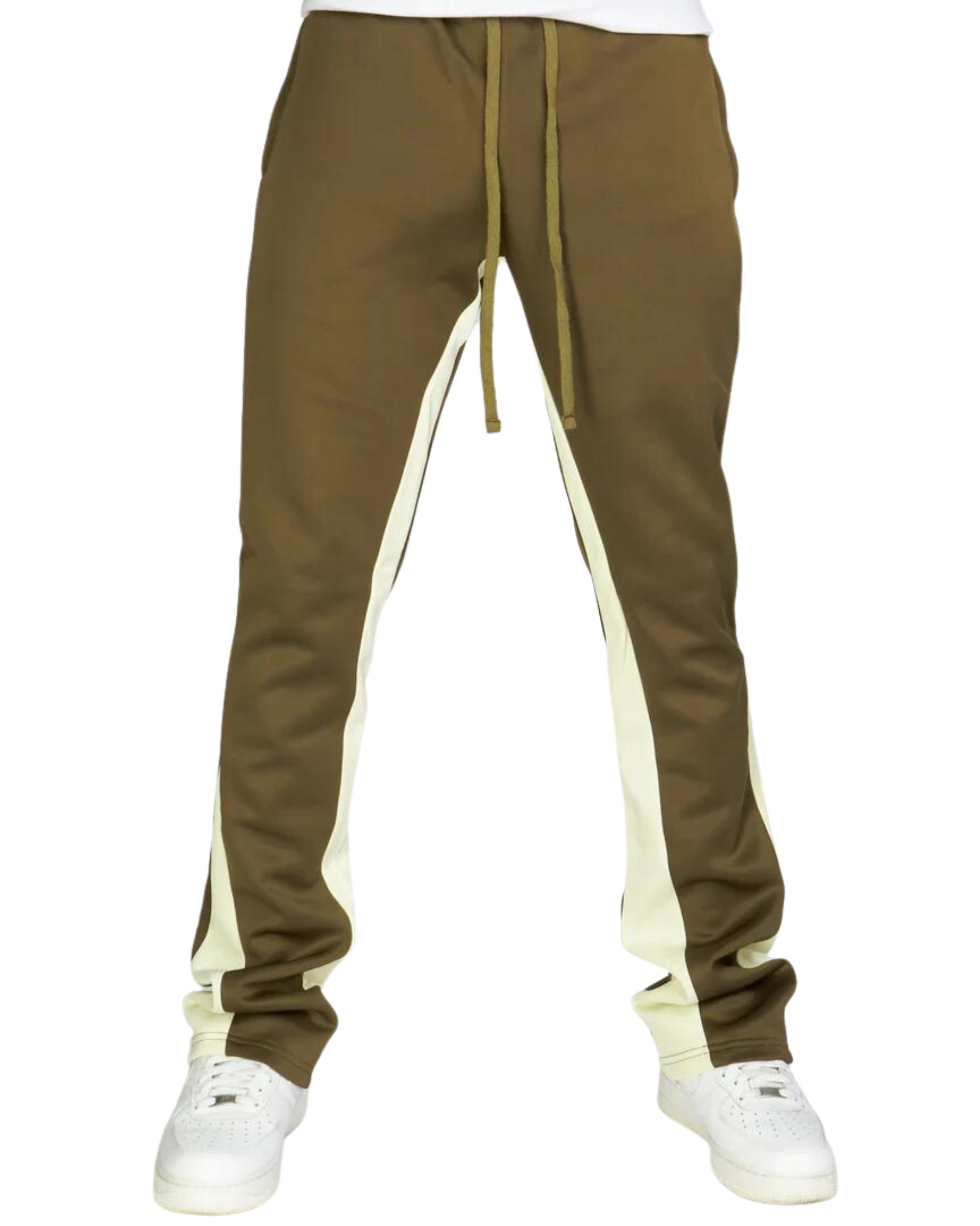 The Stacked Fit ensures a modern and trendy silhouette, dishing out a bold statement that effortlessly catches attention. Made from high-quality materials, these track pants are built to withstand daily wear and tear while providing ultimate comfort throughout the day. Featuring an adjustable drawstring waist, these pants offer a personalized fit that can be easily adjusted to your liking. The elasticized cuffs provide a snug and secure fit, eliminating any unwanted distractions, making them perfect for both casual strolls and intense workouts. The Grey And White color scheme exudes elegance and adds a touch of sophistication to your ensemble. The subtle cream accents on the sides and branding details create a striking contrast against the classic grey backdrop, making these pants a standout addition to your wardrobe.